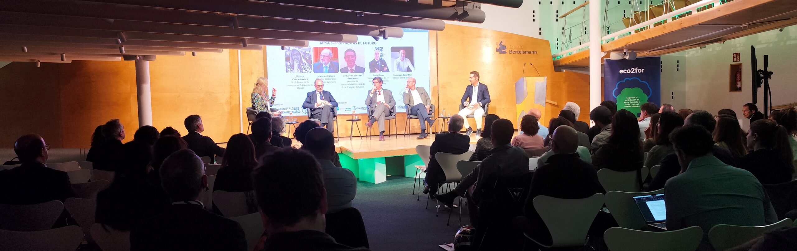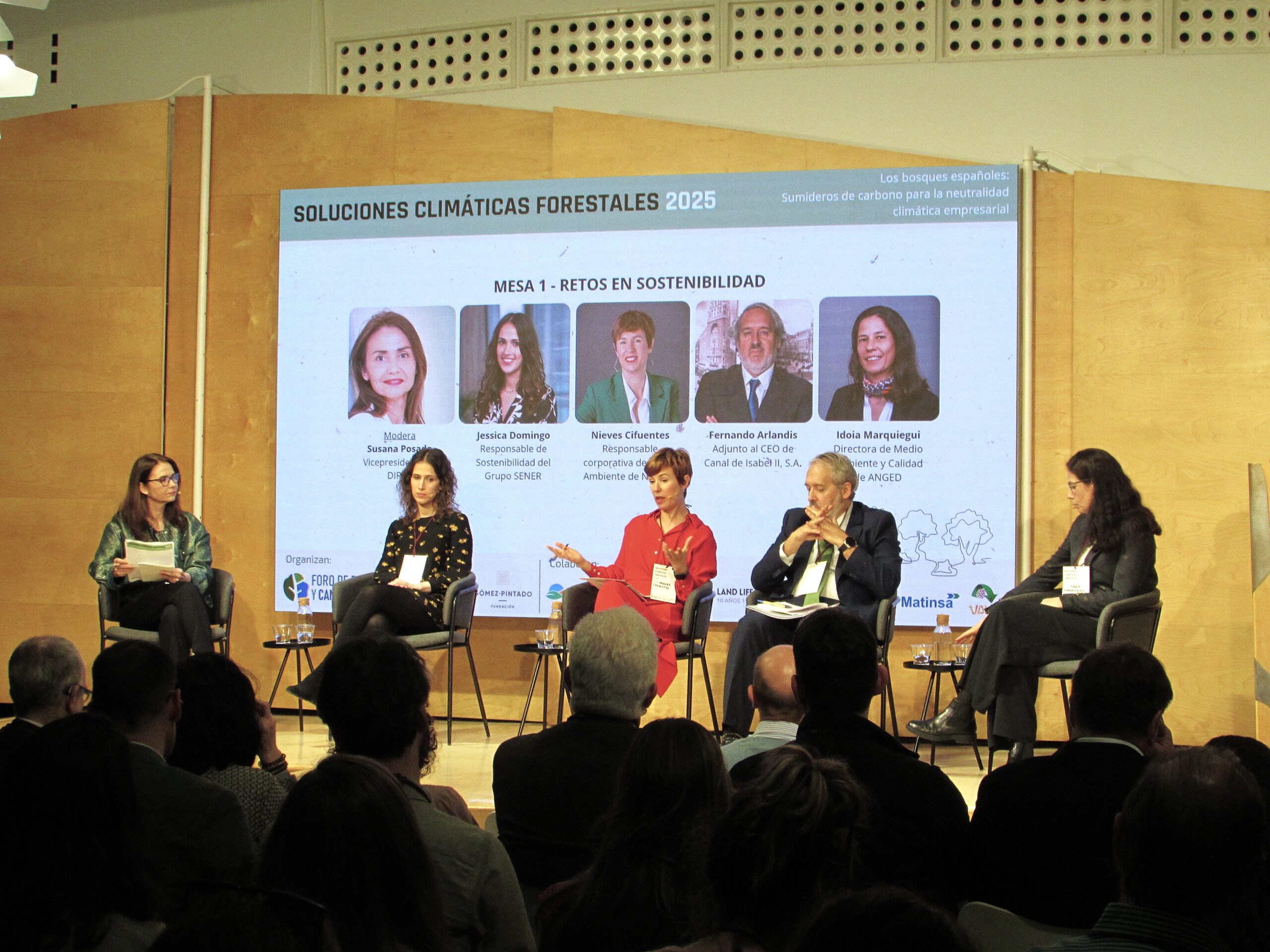 En el transcurso de la jornada, el evento reunió a lo largo de tres mesas de ponentes a representantes de la alta dirección empresarial y responsables de sostenibilidad/RSC, así como a actores del sector forestal y empresas desarrolladoras de proyectos de absorción de carbono.