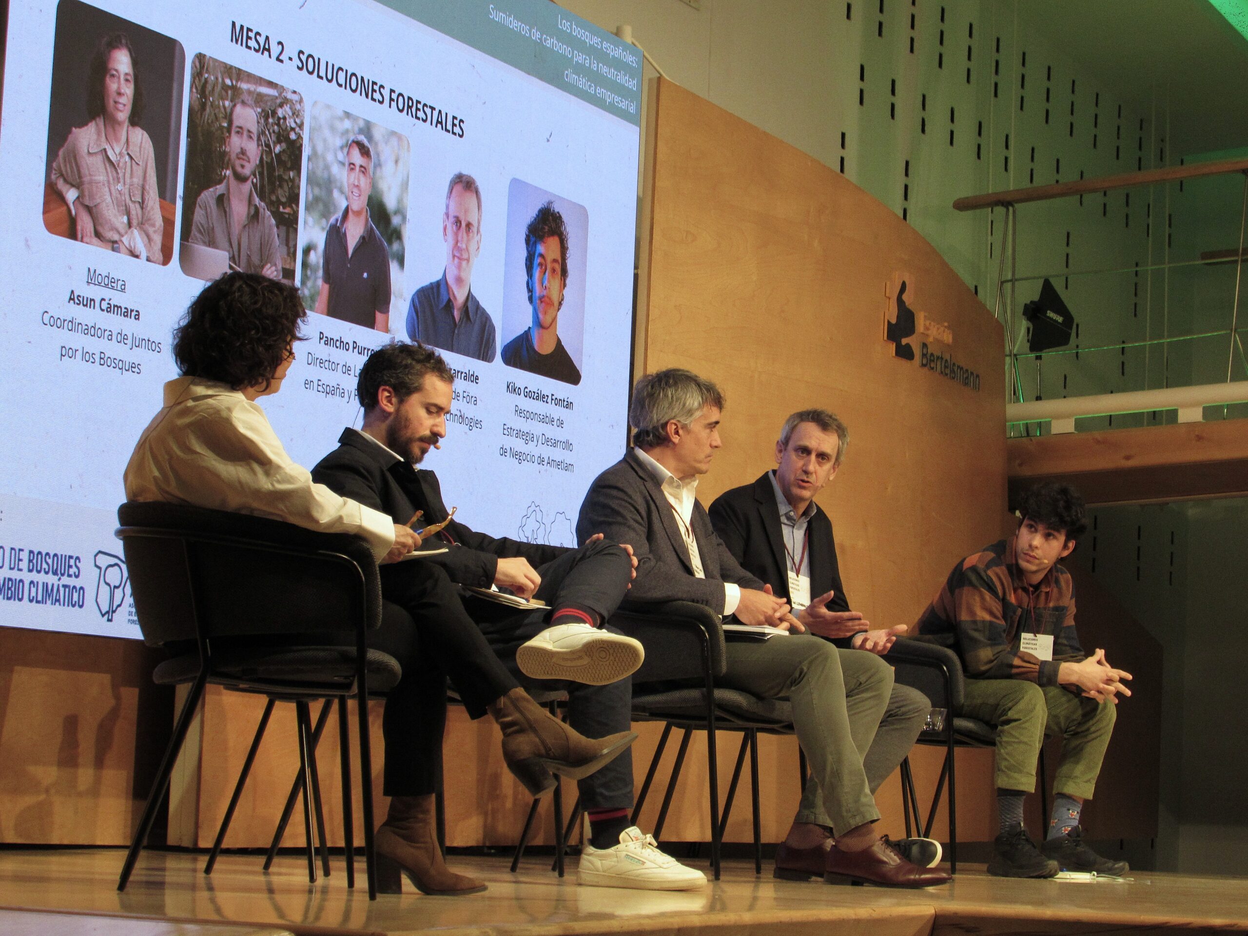 A los retos propuestos por el sector empresarial, daba respuesta la segunda mesa que moderaba la coordinadora de Juntos por los Bosques, Asun Cámara. En esta mesa se demostró que en España existe un sector forestal profesional consolidado, con experiencia y capacidad técnica, que ya está impulsando y desarrollando soluciones climáticas basadas en gestión forestal, proyectos de absorción de carbono y otros servicios ecosistémicos. Participaron Máximo Sánchez, CEO de AirCO2; Pancho Purroy, director de Land Life Iberia; Iñigo Lizarralde, director de Föra Forest Technologies; y Kiko González Fontán, director de Estrategia y Desarrollo de Negocio de AMETLAM; quienes expusieron diversas iniciativas dirigidas a acompañar a las empresas en su transición hacia la neutralidad climática. Todos coincidieron en destacar que estas soluciones forestales no solo generan beneficios climáticos, sino que también tienen un impacto directo en la revitalización del medio rural. Las inversiones en estos proyectos representan una oportunidad para dinamizar la “España vaciada”, contribuyendo a revertir el abandono de los territorios rurales mediante actividades sostenibles y generadoras de empleo.